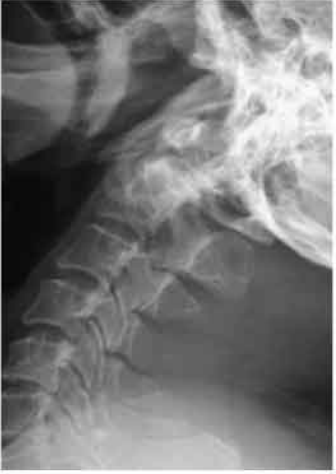 Anterior arch of C1 subluxes anteriorly narrowing the space available for cord. This is seen on MRI scan. The space available for cord widens on neck extension.Investigations