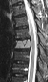 A repeat MRI showed post contrast enhancement of most of T7 vertebra. There was no cord compression.