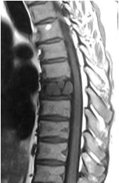 This 43-year-old Caucasian male first presented to a doctor with a complaint of mild thoracic back pain with radiation round the left chest. He had no neurological deficits. X Rays done showed any abnormalities. MRI showed a post contract enhancement in the left half of the T7 vertebra. A CAT guided needle biopsy done was not conclusive. He was then referred for further management, about 5 months after he noticed thoracic backache. Pain was described as a discomfort, occasionally sharp and radiating around the mid left chest. He had no neurological deficits and no myelopathy.